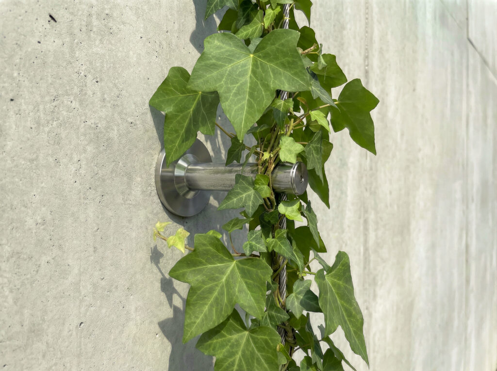 Klassisk vajerterminal i rostfritt stål för enkel och stilren fasadgrönska.